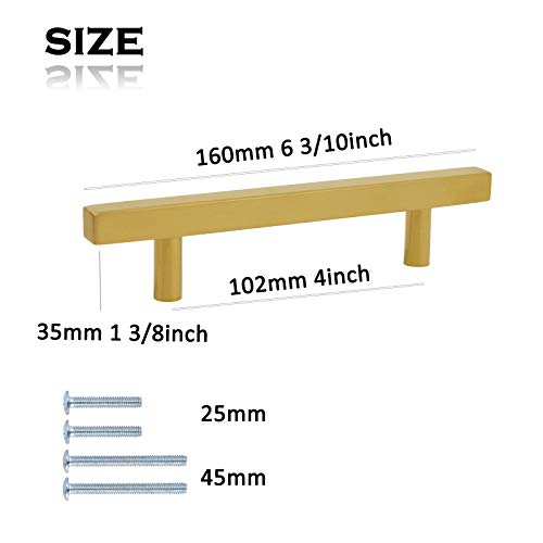 Brushed Brass Drawer Pulls 4″ 102mm 1PACK Kitchen Furniture Hardware Bathroom Cupboard Door Pull Handles Gold Cabinet Knobs T Square Bar Handle 6 3/10″ 160mm Length